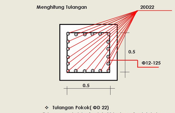 Tulangan pokok berjumlah 20 batang, jumlah kolom pada masing masing lantai adalah 64 buah.